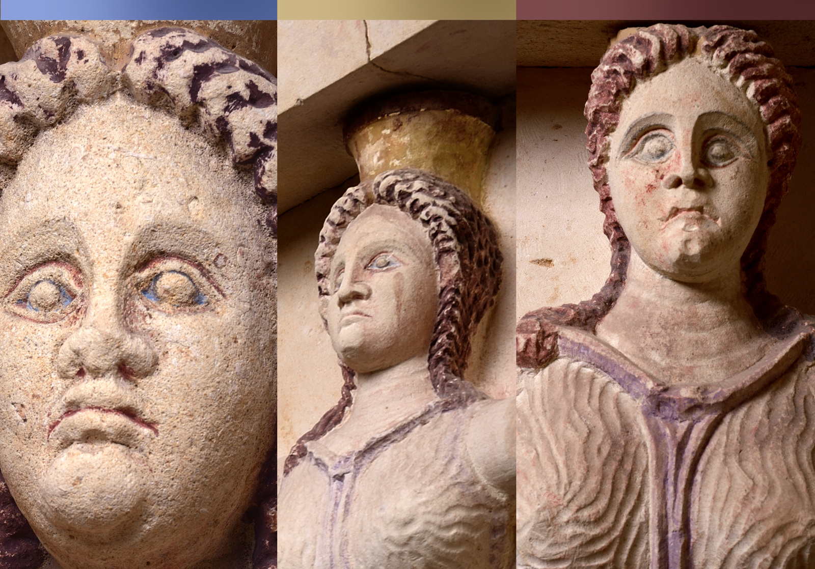 Белите каменни фигури на кариетидите от Свещарската могила някога не са били толкова бели. Ако човек се загледа внимателно в тях, открива, че тук-там са останали малки оцветени участъци.